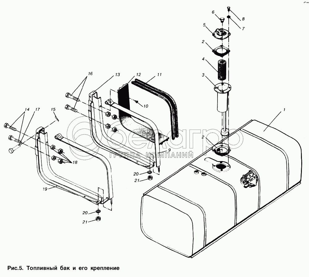 Каталог запасных частей к технике: МАЗ-53366. Топливный бак и его крепление