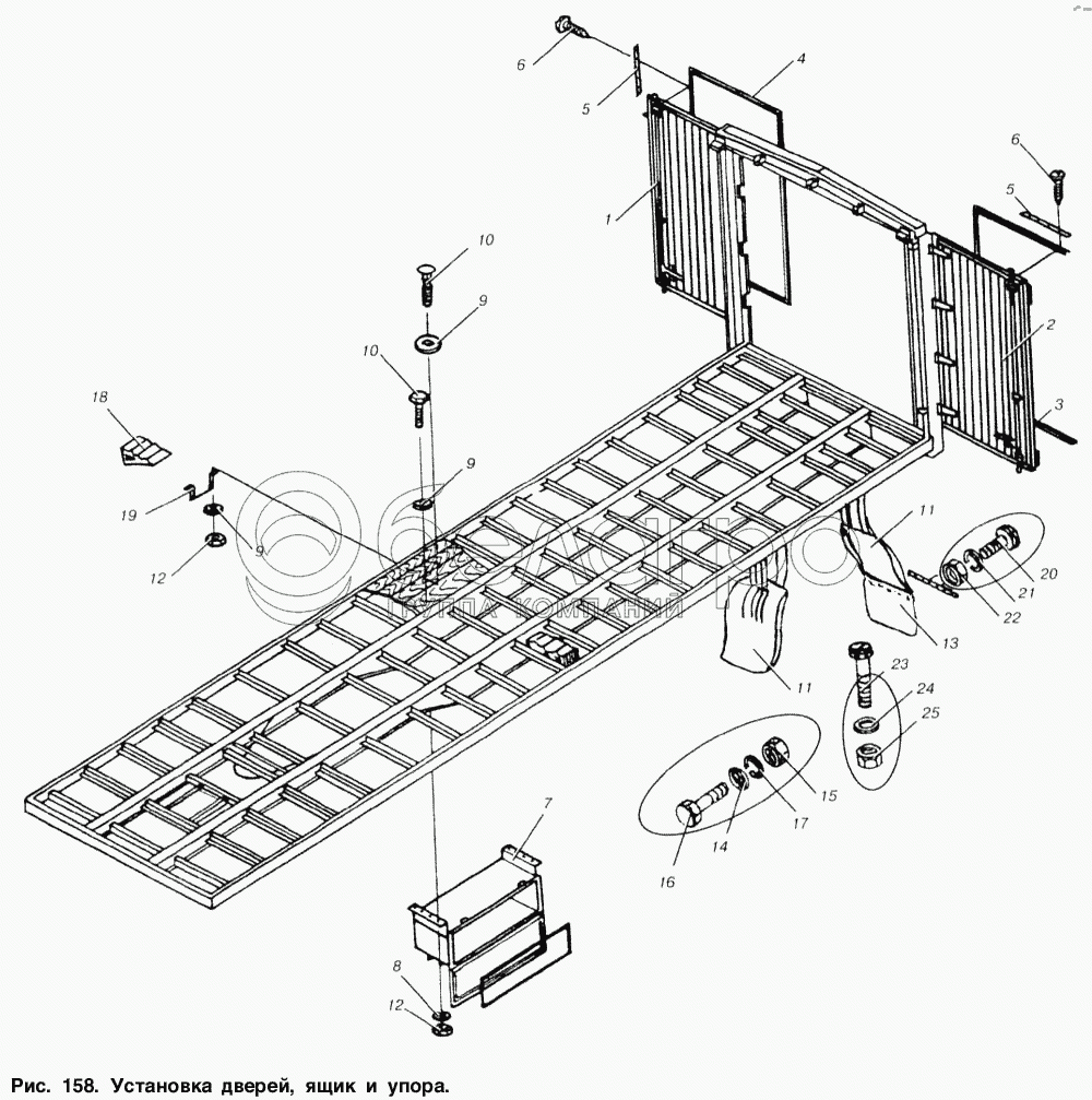 Каталог запасных частей к технике: МАЗ-53366. Установка дверей, ящика и упора