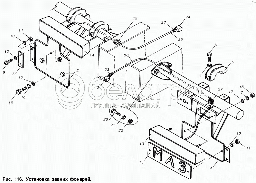 Каталог запасных частей к технике: МАЗ-53366. Установка задних фонарей