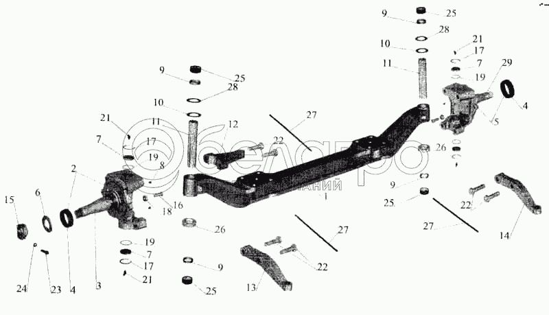 Каталог запасных частей к технике: МАЗ-5336. Балка передней оси