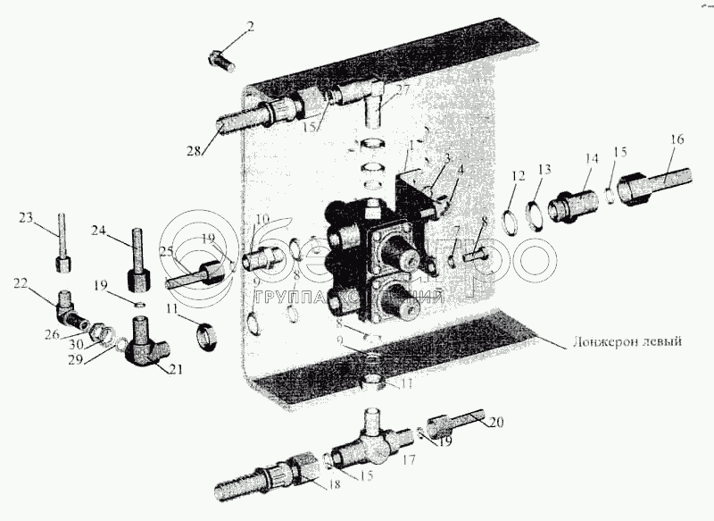 Каталог запасных частей к технике: МАЗ-5336. Крепление четырехконтурного клапана МАЗ-630305, МАЗ-630303
