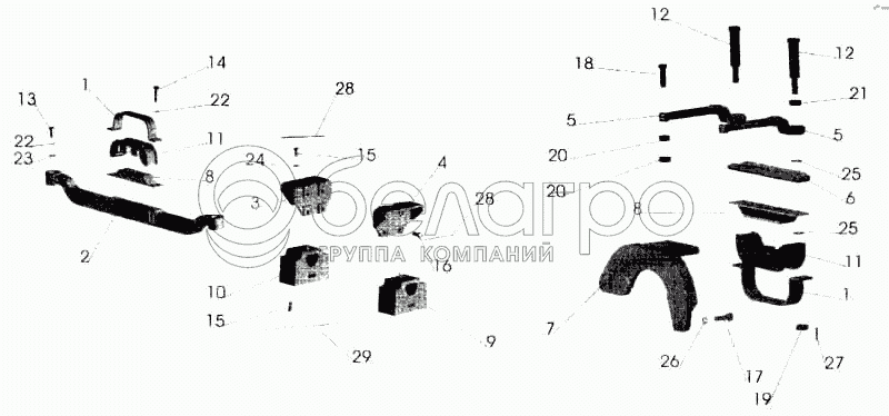 Каталог запасных частей к технике: МАЗ-5336. Крепление двигателя на автомобиле МАЗ-533702
