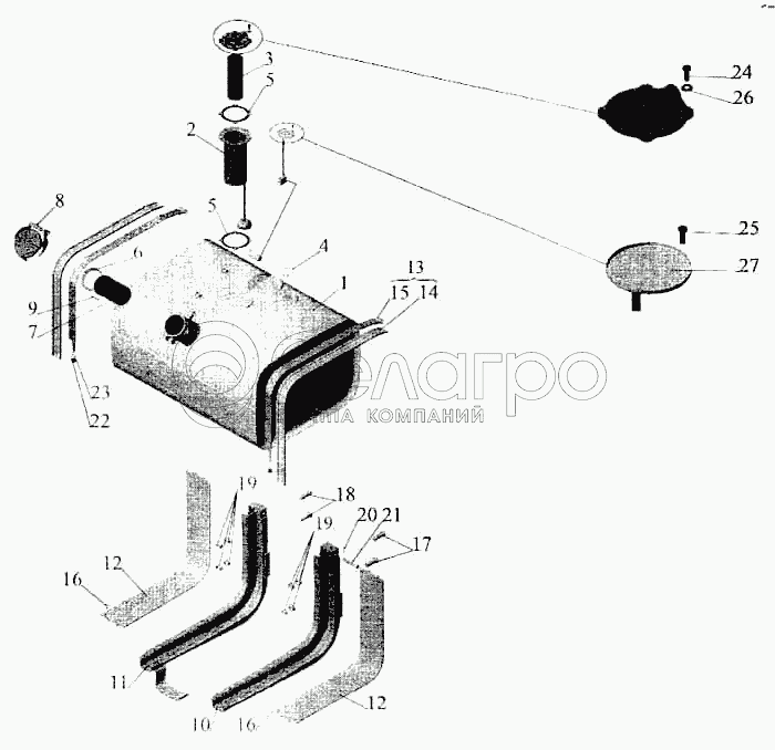 Каталог запасных частей к технике: МАЗ-5336. Крепление топливного бака