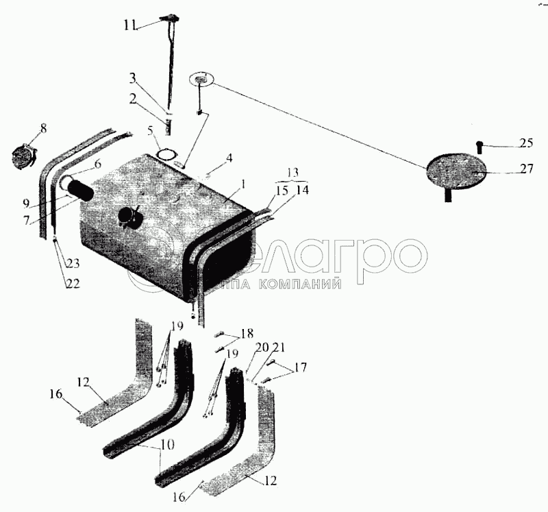 Каталог запасных частей к технике: МАЗ-5336. Крепление топливного бака (350 литров)