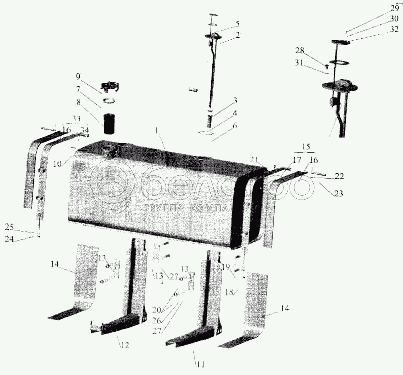Каталог запасных частей к технике: МАЗ-5336. Крепление топливного бака (500 литров)