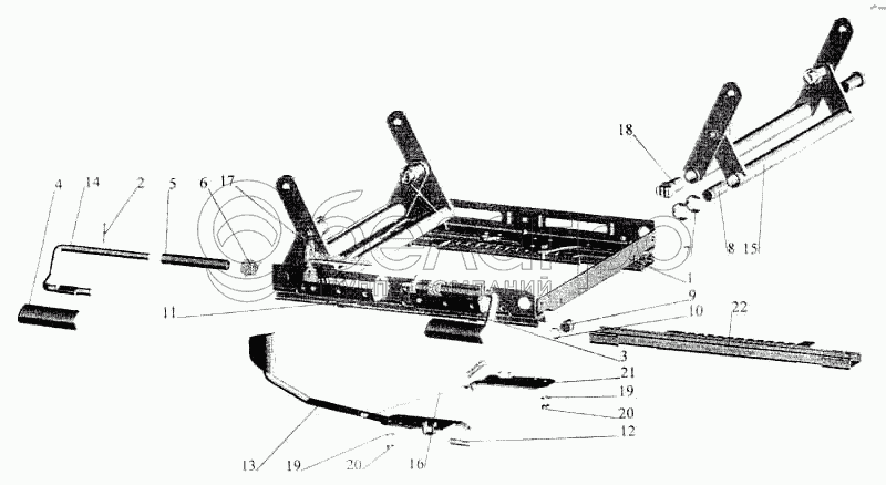 Каталог запасных частей к технике: МАЗ-5336. Механизм регулирования высоты