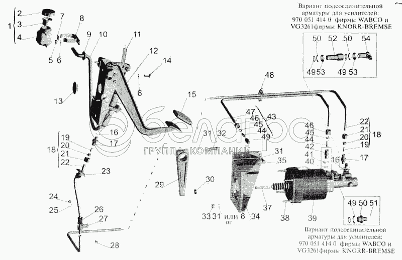 Каталог запасных частей к технике: МАЗ-5336. Механизм управления сцеплением