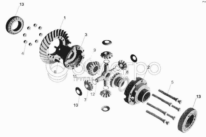Каталог запасных частей к технике: МАЗ-5336. Мост задний МАЗ-533608. Дифференциал
