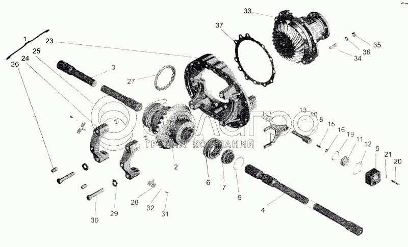 Каталог запасных частей к технике: МАЗ-5336. Мост задний МАЗ-533608. Редуктор