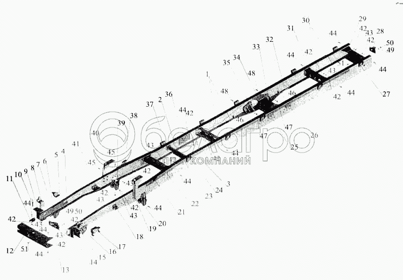 Каталог запасных частей к технике: МАЗ-5336. Рама автомобилей МАЗ-630308, 630305