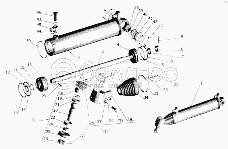 Каталог запасных частей к технике: МАЗ-5336. Силовой цилиндр гидроусилителя рулевого управления
