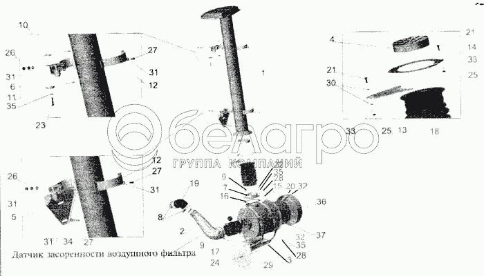 Каталог запасных частей к технике: МАЗ-5336. Система питания воздухом МАЗ-53302, 533603, 630303