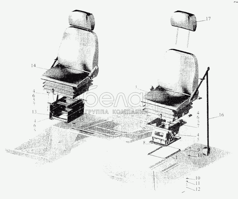 Установка и пневмопитание сидений автомобиля МАЗ-533702