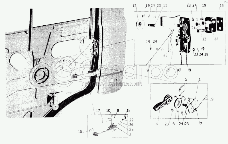 Каталог запасных частей к технике: МАЗ-5336. Установка наружной ручки и замка двери