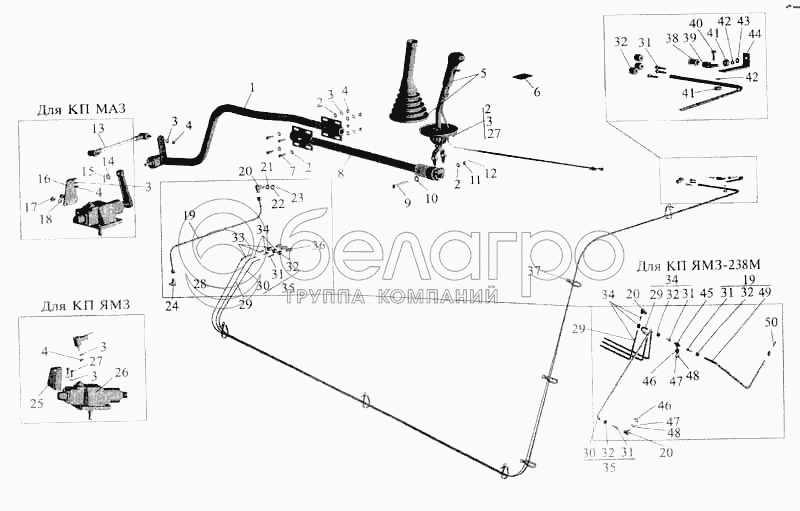 Каталог запасных частей к технике: МАЗ-5336. Установка привода управления коробкой передач