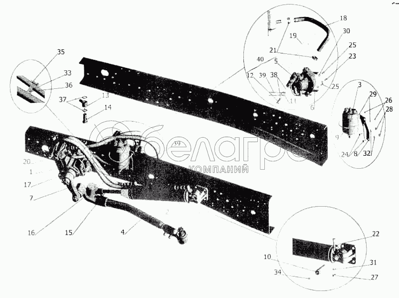 Каталог запасных частей к технике: МАЗ-5336. Установка рулевого управления