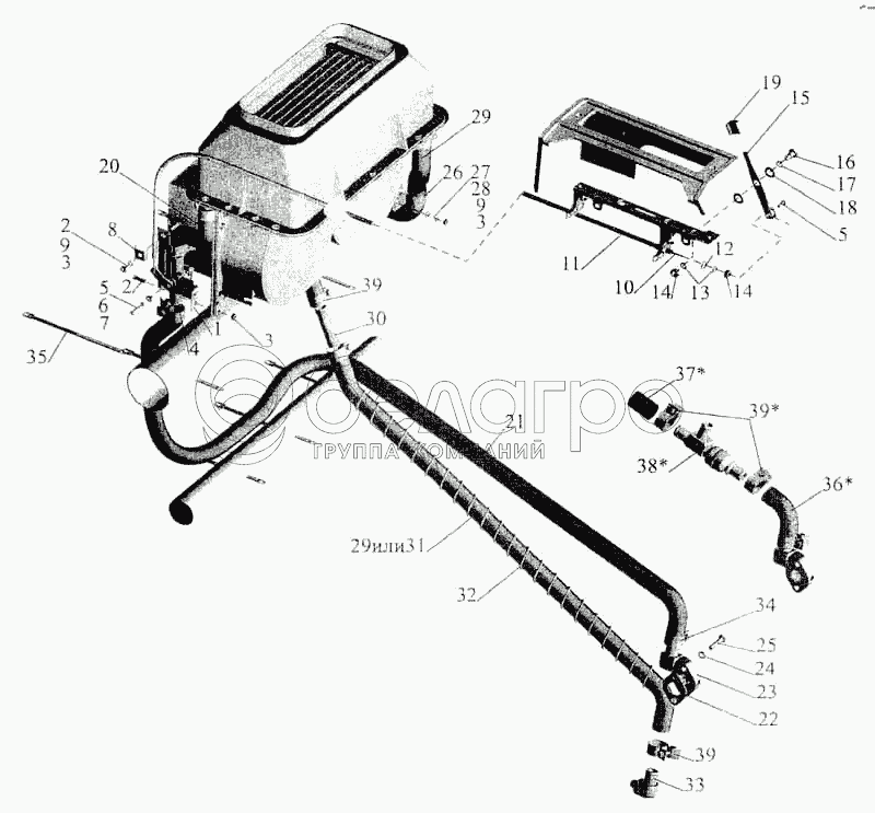 Каталог запасных частей к технике: МАЗ-5336. Установка шлангов и крана управления отопителем