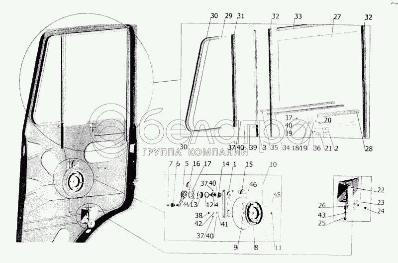 Каталог запасных частей к технике: МАЗ-5336. Установка стеклоподъемника и ручки стеклоподъемника