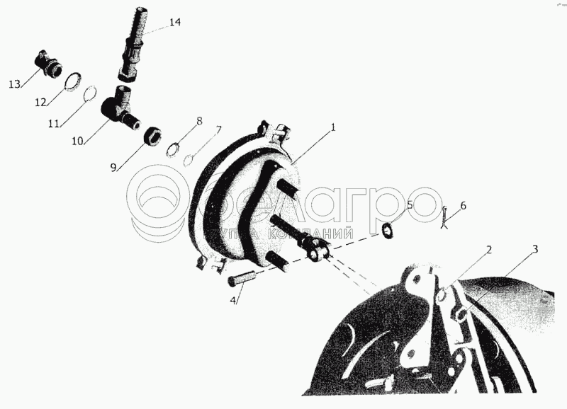 Каталог запасных частей к технике: МАЗ-5336. Установка тормозных камер и присоединительной арматуры