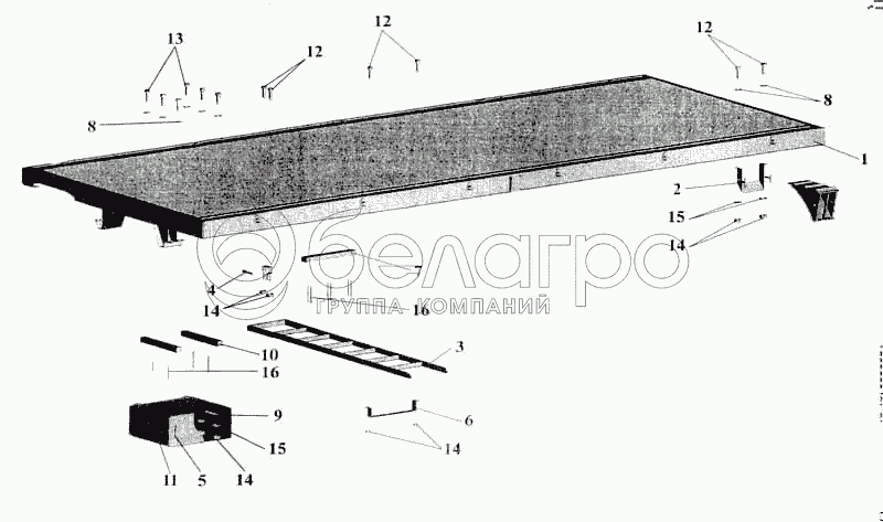 Каталог запасных частей к технике: МАЗ-5336. Установка трапа, противооткатных упоров, инструментального ящика