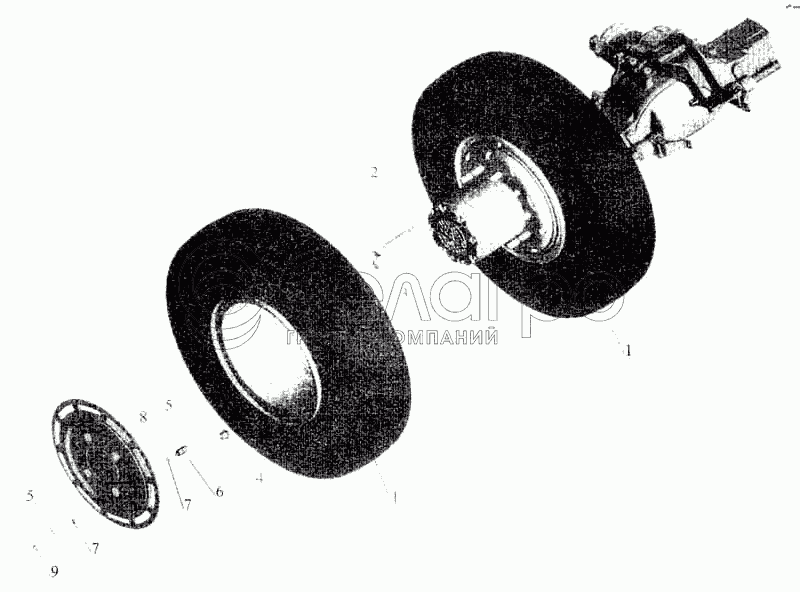 Каталог запасных частей к технике: МАЗ-5336. Установка задних колес 54321-3100002-020