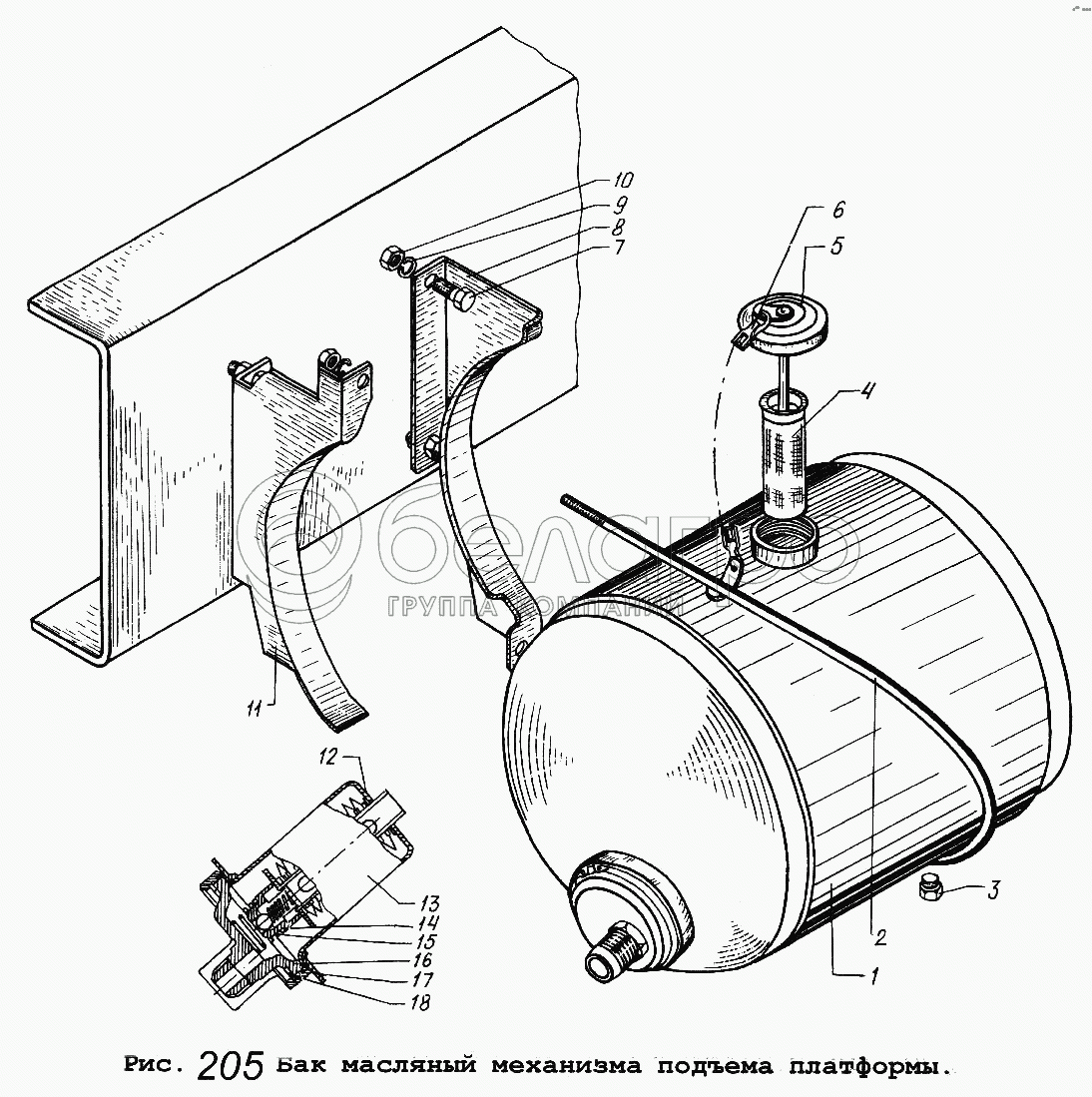 Каталог запасных частей к технике: МАЗ-53371. Бак масляный механизма подъема платформы