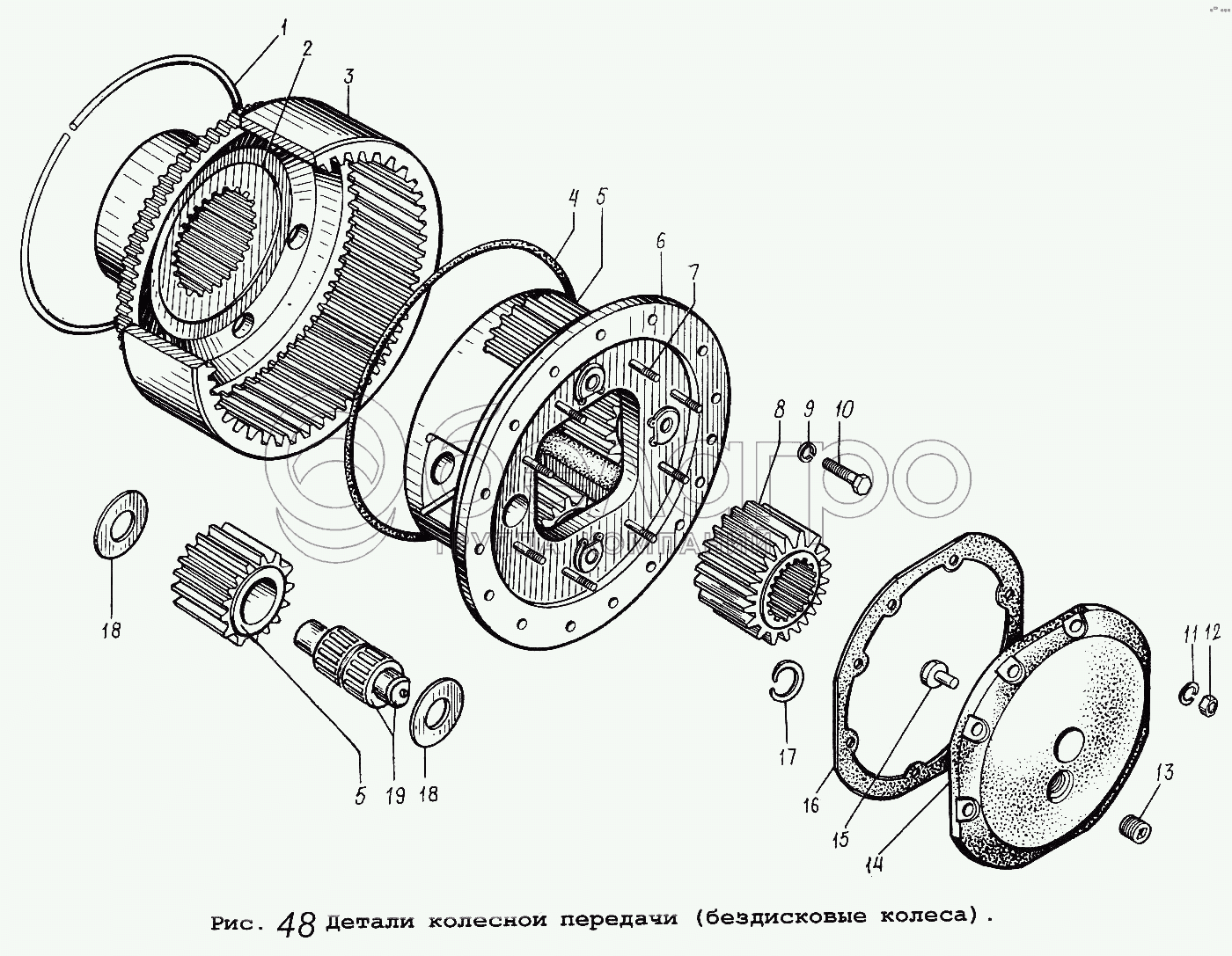 Каталог запасных частей к технике: МАЗ-53371. Детали колесной передачи (бездисковые колеса)