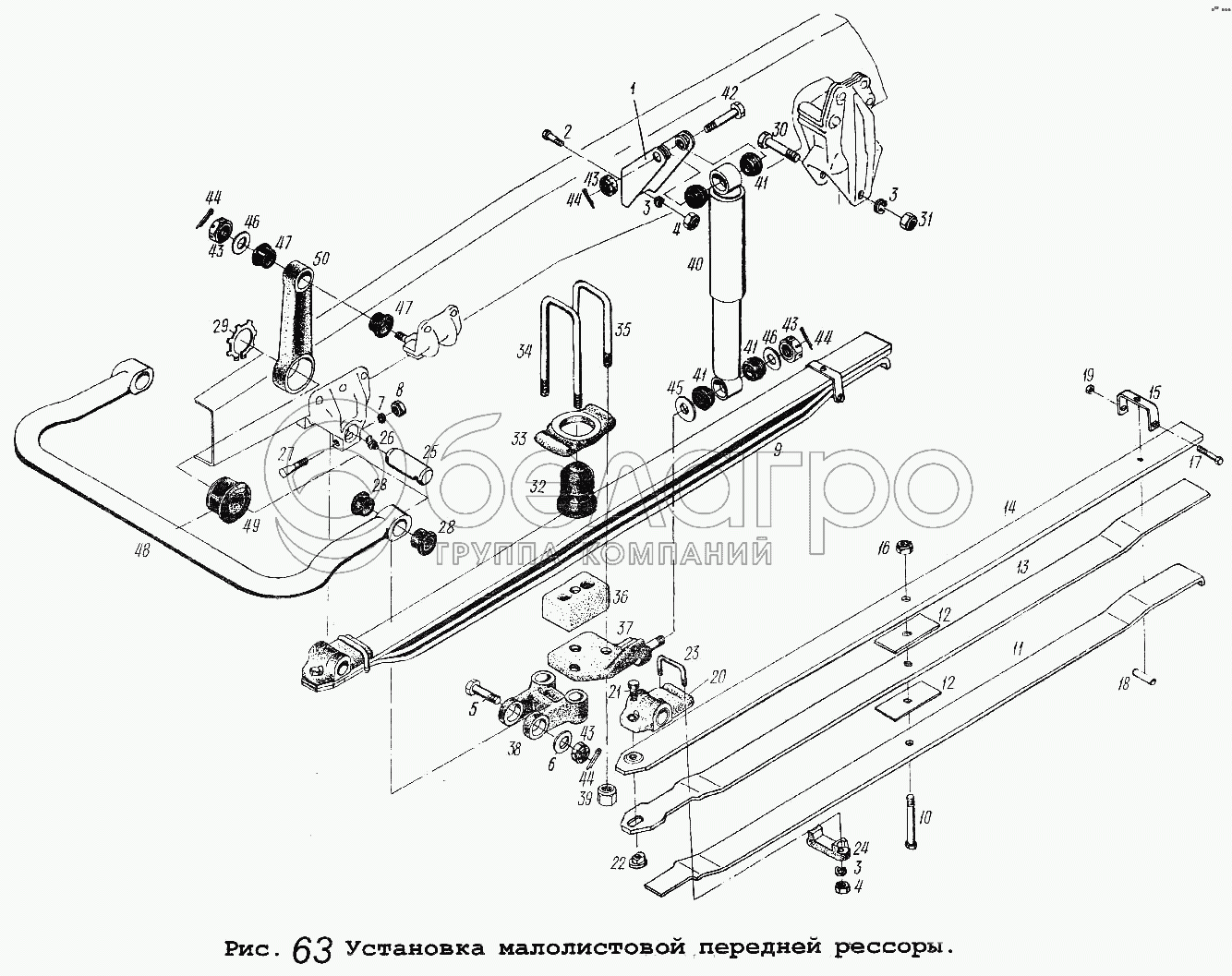 Каталог запасных частей к технике: МАЗ-53371. Установка малолистовой передней рессоры