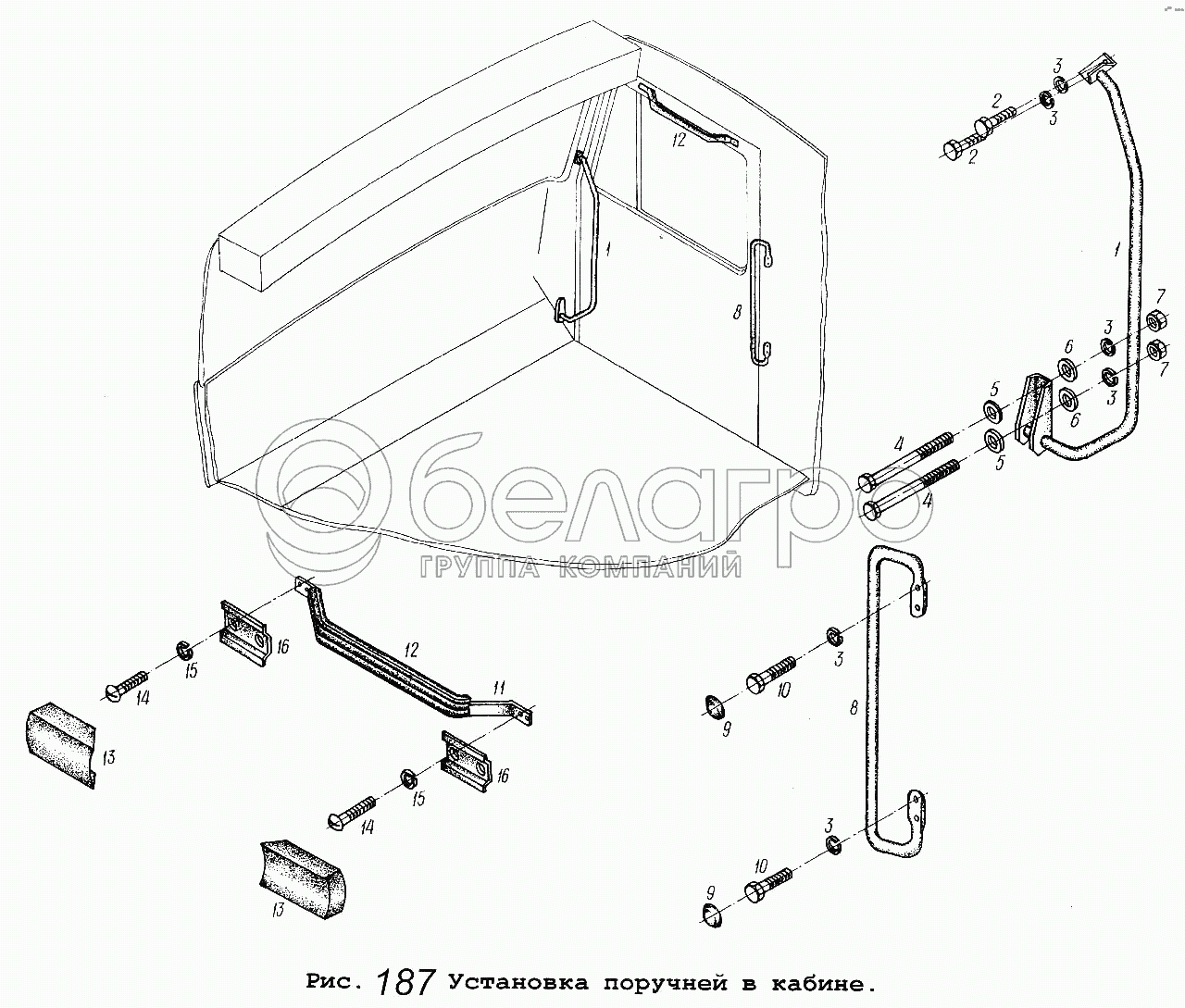 Каталог запасных частей к технике: МАЗ-53371. Установка поручней в кабине
