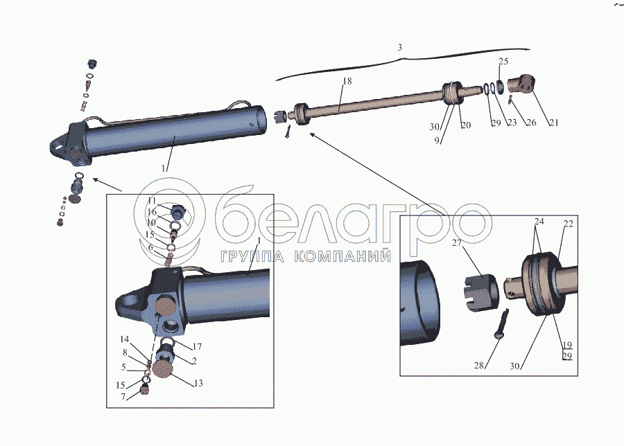 Каталог запасных частей к технике: МАЗ-533731. Гидроцилиндр 64221-5003010