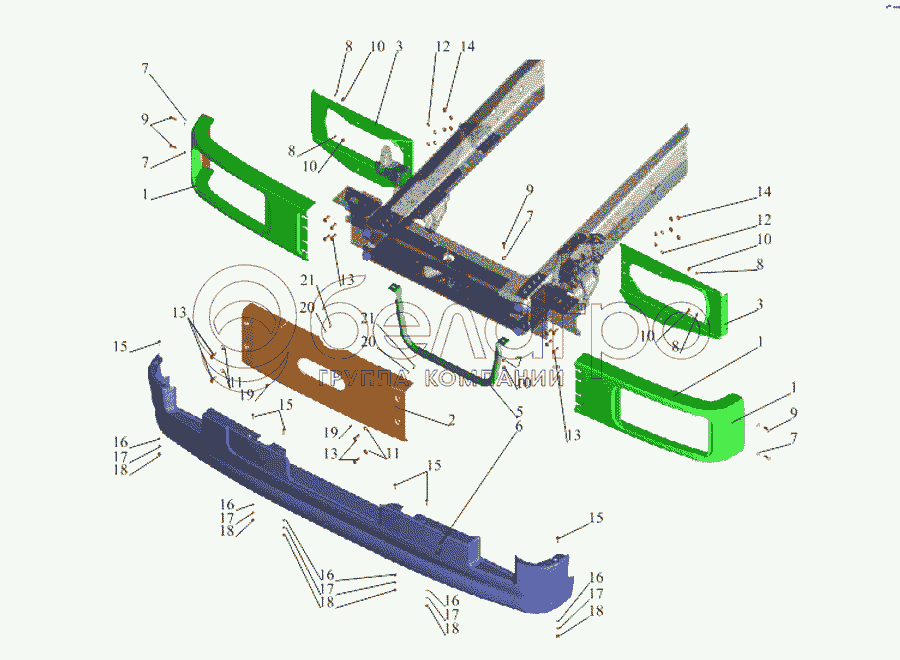 Каталог запасных частей к технике: МАЗ-533731. Крепление бампера