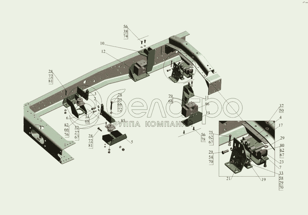 Каталог запасных частей к технике: МАЗ-533731. Крепление двигателя 533731-1001002-011