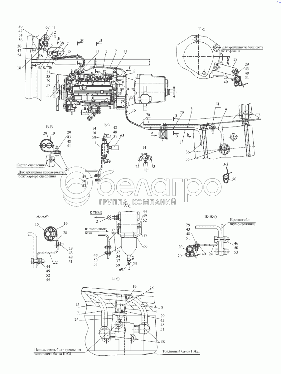 Каталог запасных частей к технике: МАЗ-533731. Крепление топливопроводов 533731-1104002