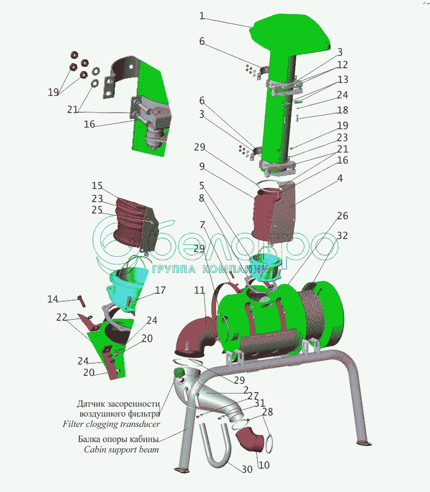Каталог запасных частей к технике: МАЗ-533731. Крепление воздушного фильтра 555132-1109002