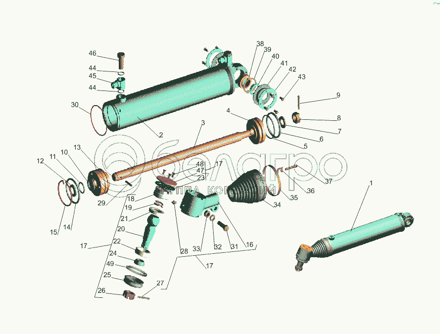 Каталог запасных частей к технике: МАЗ-533731. Силовой цилиндр гидроусилителя рулевого управления 6422-3405004
