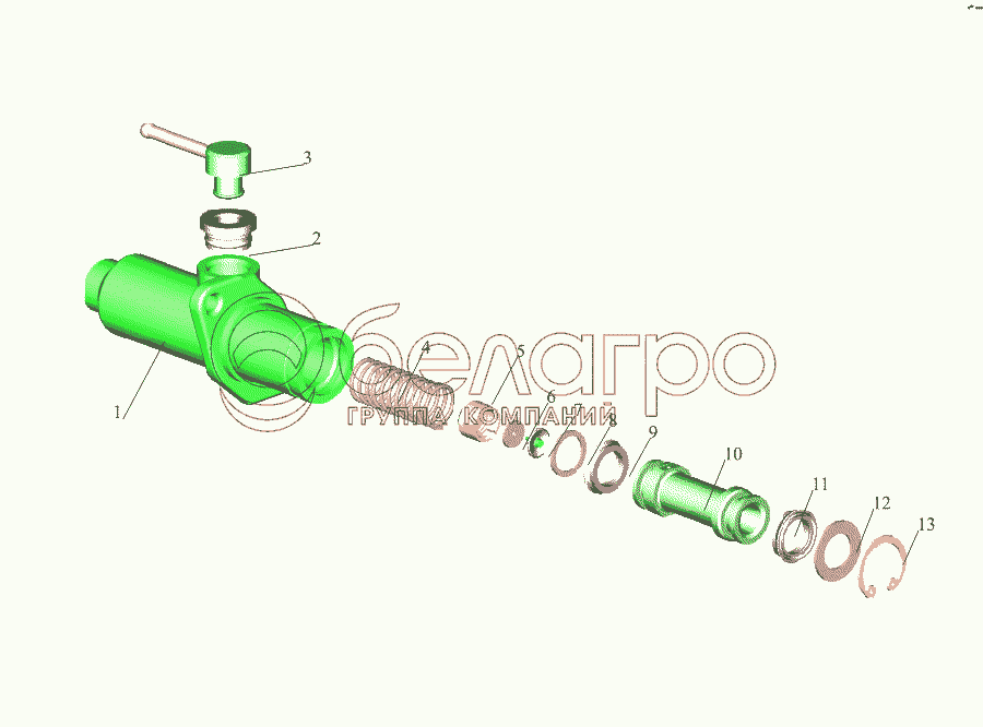 Каталог запасных частей к технике: МАЗ-533731. Цилиндр подпедальный 6430-1602510