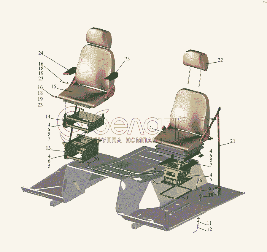 Каталог запасных частей к технике: МАЗ-533731. Установка и пневмопитание сидений 5551-6800006-040