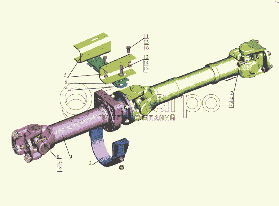Каталог запасных частей к технике: МАЗ-533731. Установка карданной передачи 533731-2200000-010