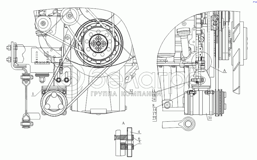 Каталог запасных частей к технике: МАЗ-533731. Установка компрессора 630333-8100010-000