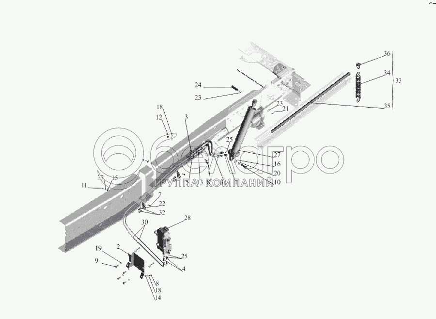 Каталог запасных частей к технике: МАЗ-533731. Установка механизма подъема кабины 5337-5000040-20