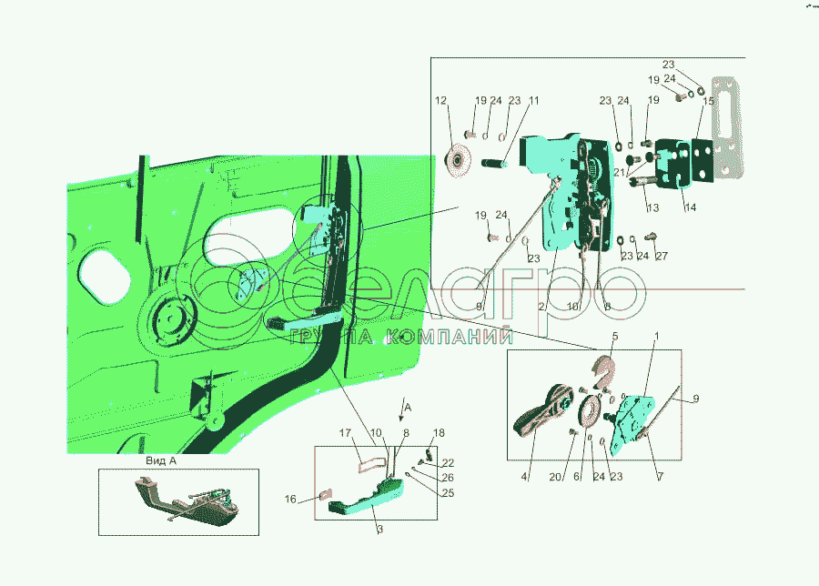 Каталог запасных частей к технике: МАЗ-533731. Установка наружной ручки и замка двери