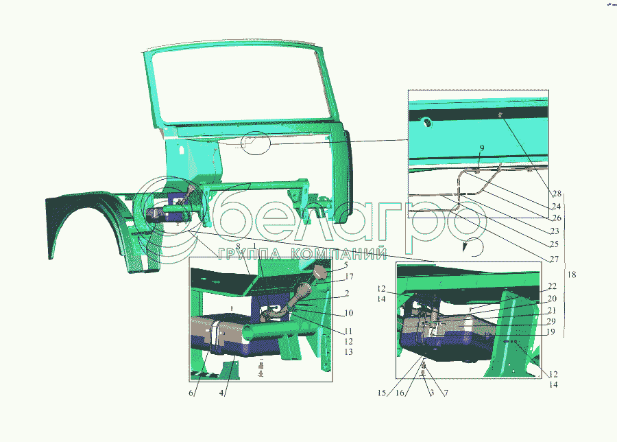 Каталог запасных частей к технике: МАЗ-533731. Установка омывателя 64221-5200008-01