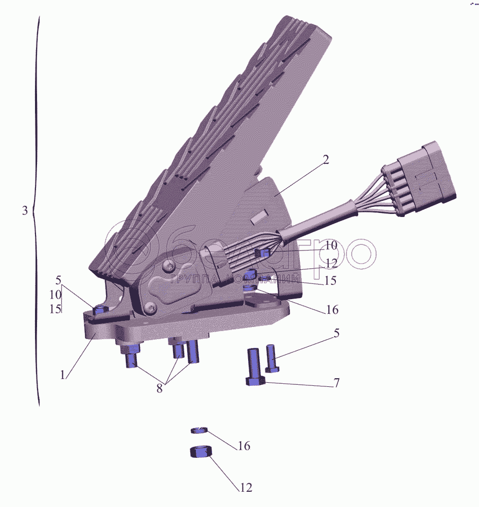 Каталог запасных частей к технике: МАЗ-533731. Установка педали управления двигателем 437143-1108002