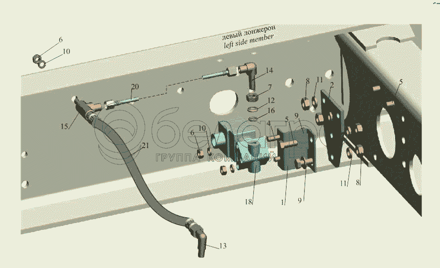 Каталог запасных частей к технике: МАЗ-533731. Установка привода управления блокировкой 533731-2400024