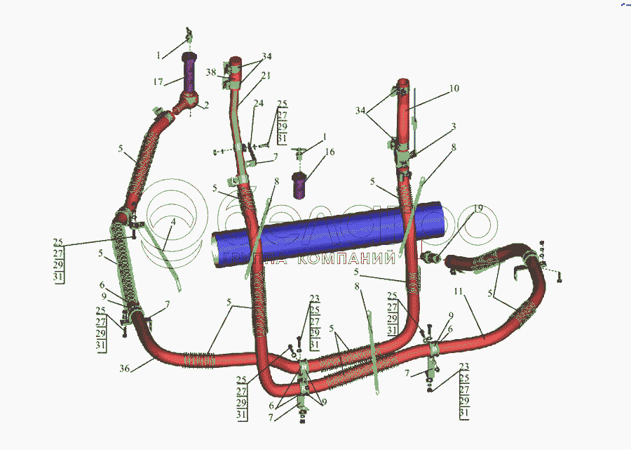 Каталог запасных частей к технике: МАЗ-533731. Установка шлангов отопителя 533632-8100006