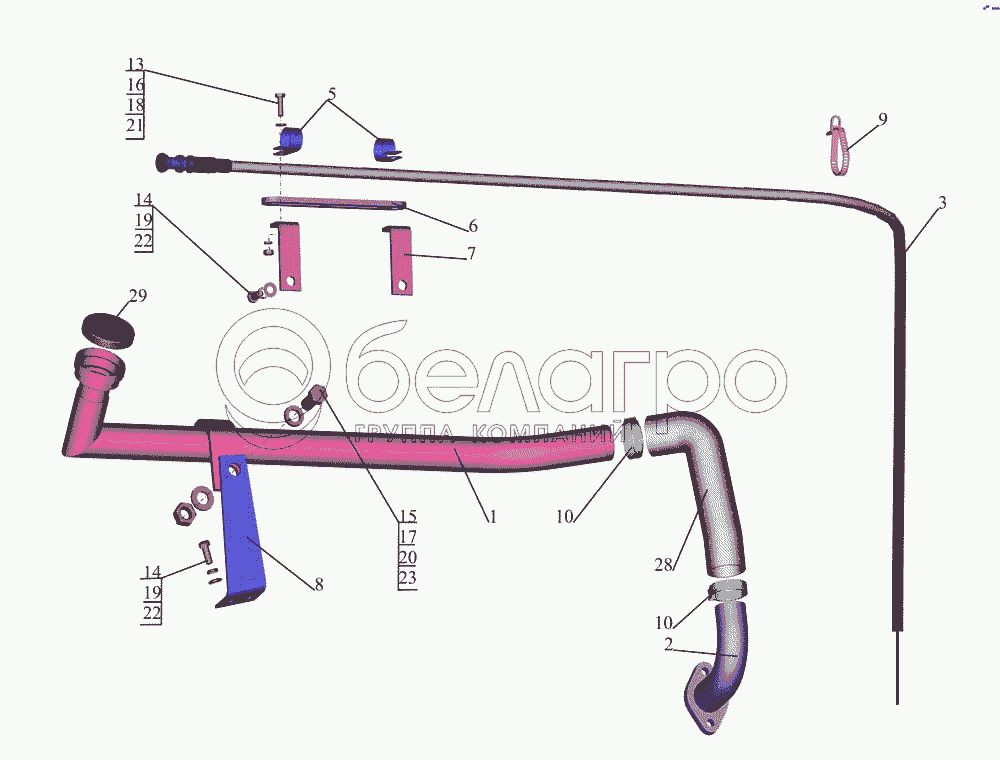Каталог запасных частей к технике: МАЗ-533731. Установка системы заливки и контроля уровня масла
