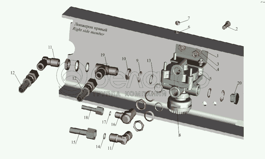 Каталог запасных частей к технике: МАЗ-533731. Установка ускорительного клапана 543403-3518004
