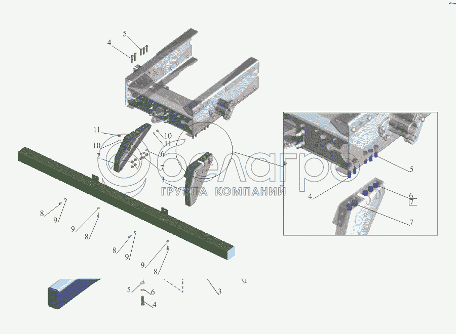 Каталог запасных частей к технике: МАЗ-533731. Установка заднего бампера