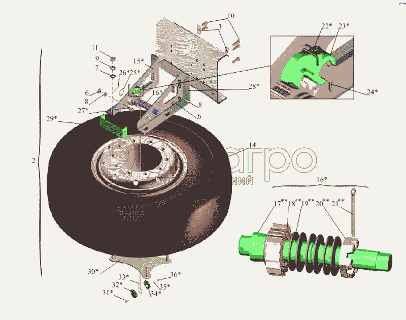 Каталог запасных частей к технике: МАЗ-533731. Установка запасного колеса