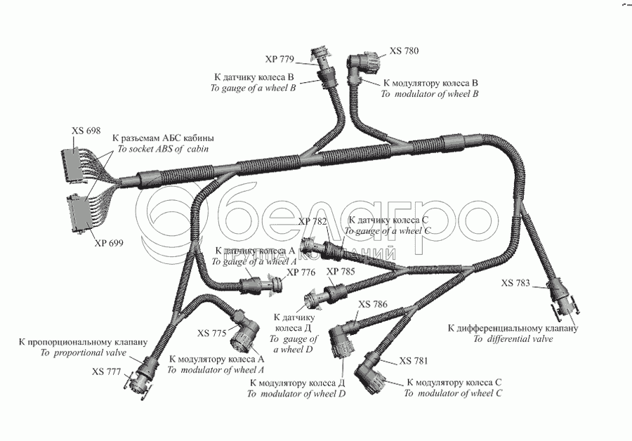 Каталог запасных частей к технике: МАЗ-533731. Жгут АБС по шасси 533702-3724760-010
